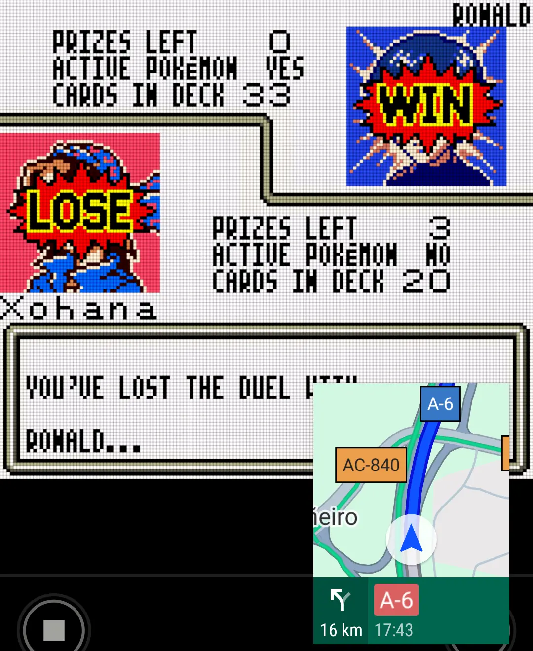 Esa segunda parte resulta máis interesante porque os rivais impoñen requisitos sobre a baralla ou incorporan cambios de regras máis ou menos significativos. Na práctica iso implicou que superei cada un dos novos ximnasios cunha baralla do tipo local, xa que era habitual que esixiran xogar unha das primeiras partidas só incluíndo enerxías dunha cor e non me apetecía ir cambiando máis do preciso. Foi bastante doado, pero si que atranquei un pouco no final do ximnasio psíquico ata que abandonei ese ideal e abusei da gran vantaxe que outorga o sistema de debilidades e resistencias. O tramo final pasaba por ser o máximo campión (doado se non importa abusar do sistema de gardar-cargar partida) para obter as cartas lendarias coas que facer fronte aos máis poderosos do Great Rocket. De feito, a miña baralla final era o Zapdos de lenda como único monstro, o que garantía comezar con el en xogo e comezar a golpear por 70 na terceira quenda. Ninguén lle puido poñer freo a esa estratexia e, pouco despois, xa estaba a ver os créditos finais.