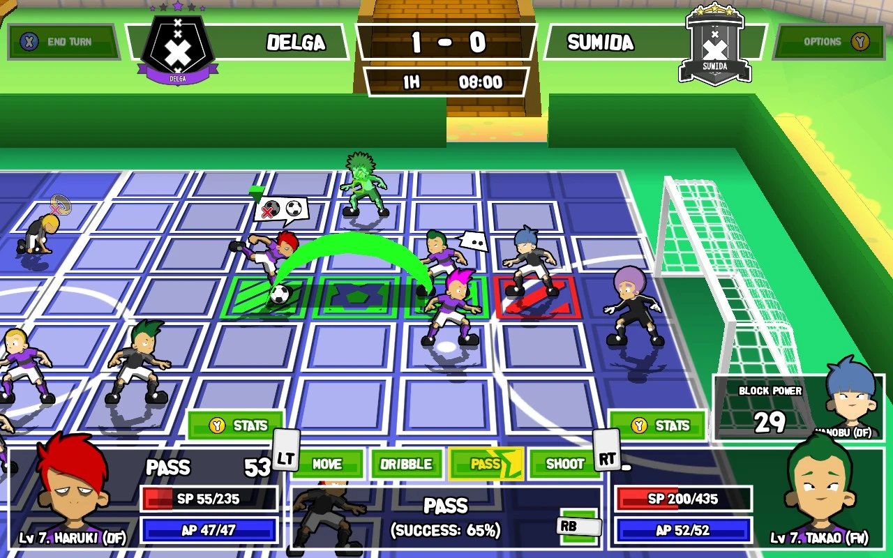 Na parte táctica non hai moito truco, sempre e cando lembremos que existe a regra do fóra de xogo, inda que é posible trampealo pasando o balón a un oco libre onde o xogador, en clara posición antirregulamentaria, o poderá recuperar e xutar a meta. Avanzar a nosa liña defensiva tamén é unha estratexia bastante útil, xa que os rivais terán que volver atrás para poder recibir o balón, basicamente freando as posibilidades de contraataques rápidos. Tamén é certo que é un comportamento forzado pola intelixencia artificial, porque se considera que non pode poñer aos seus xogadores (varóns, aquí non hai ningunha rapaza) nunha posición legal, lanzará un pase sobre o que o árbitro non dirá nada. Pola outra banda, se queremos facer unha defensa totalmente efectiva, poderemos meter un xogador coa pelota nun recuncho do terreo de xogo e rodealo con compañeiros. Dado que non é posible que dous personaxes ocupen a mesma casa, nin sequera temporalmente nun movemento, os rivais non se poderán achegar de ningunha maneira posible, garantindo o final da metade actual do partido sen riscos para a nosa meta.