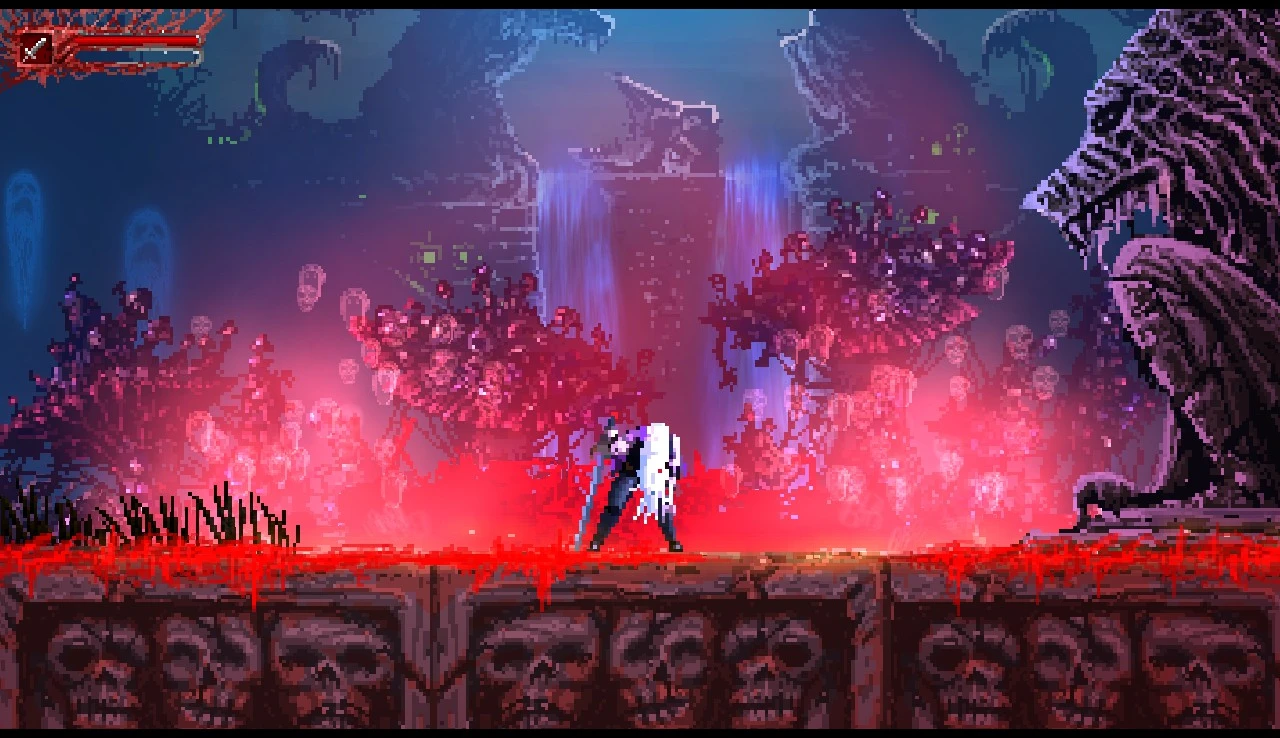 Sangue, lume e morte. Combinación clásica que nos acompañará neste Slain dende o comezo. O titorial xa ten todos eses elementos: aparece o xefe final envolto en sangue antes de obter o control, temos que saltar nunha plataforma que vai por riba do lume e provocamos mortes en todo momento sobre os seres infernais que veñen por nós. Ata atopei unha morte instantánea do protagonista antes de que rematasen de aparecer as mensaxes de aprender a xogar. Semellaba que ía ser uns deses xogos con trampas inxustas para facernos rabiar, pero a verdade é que, unha vez coñecido que existen ese tipo de cousas, non son nada complicadas de esquivar. Pola outra banda, tamén é certo que o deseño visual é un pouco sobrecargado, e ás veces resulta complicado saber que elementos son do fondo e cales son ameazas reais. Por sorte, teremos a nosa poderosa espada para loitar contra todo, asumo que será de aceiro medieval.