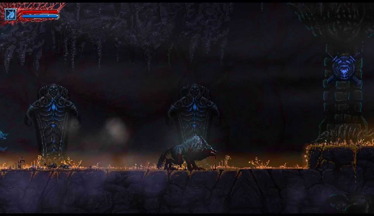 Coma se isto fose o Robot Unicorn Attack, pero con peor música, manexaremos a un lobo que ten que saltar os buratos, romper paredes cunha rápida aceleración ou aniquilar a todos os inimigos que atope no seu camiño sen case esforzo. Non funciona tan ben como o do unicornio, así que non son unhas pasaxes especialmente agradables de xogar. Perdín varias veces por non medir ben algún chimpo, pero os puntos de gardado sempre estaba preto e as consecuencias da morte eran, por tanto, mínimas. Quizais foi aí cando tiven a revelación de que podía abusar do aguante do protagonista para non me preocupar de eliminar as ameazas senón que simplemente podía recibir dano estratexicamente para chegar ata o seguinte punto de control o antes posible. O mesmo que tamén fixen no Outland ou no Itorah, así que xa comezo a pensar que é un problema meu máis que do deseño dos xogos. Unha vez vencido o xogo, que con ese estilo non era complicado, aparece unha dificultade nova cos puntos de gardado máis espallados, polo que tería que buscar outro estilo de xogo para vencer. De calquera xeito, non teño pensado volver a ese inferno para aniquilar máis esqueletos e bruxas.