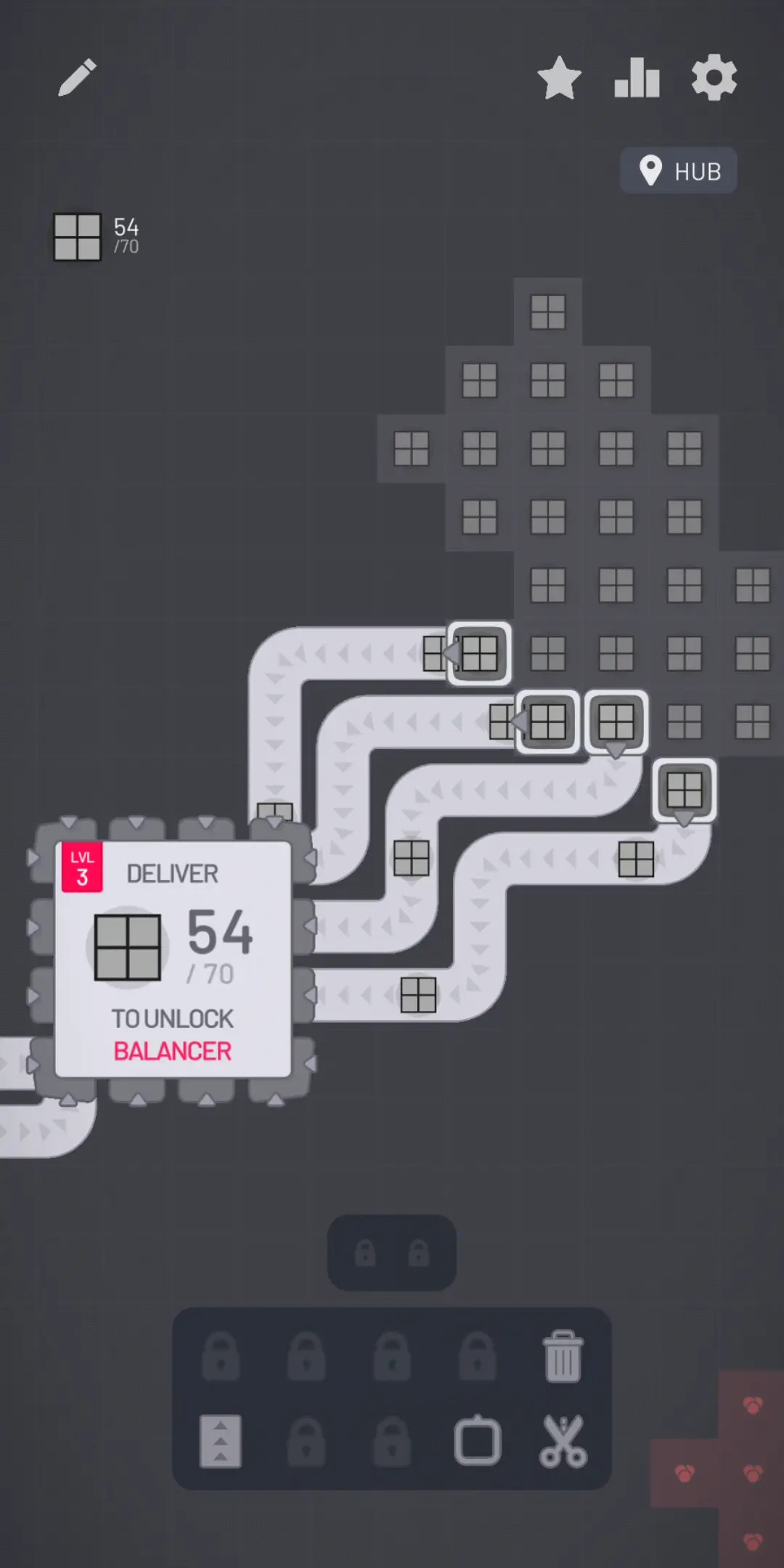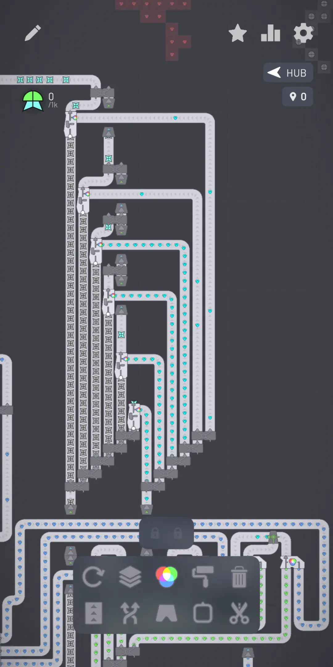 Así fun avanzando pola primeira metade dos niveis ata que desbloqueei o sistema de fábricas, que basicamente consisten en poder copiar-e-pegar as nosas máquinas. Foi entón cando puxen freo ás partidas case diarias e decidín botar un ollo en internet para ver se había algún xiro posterior, porque supoñía que non. E semella que me trabuquei. Hai elementos novos, entendo que con pequenas variacións nos deseños resultantes, e non me desagradaría probalos. Pero tamén penso que case toquei ceo nas limitacións de comodidade de xogar nun móbil (pensar en copiar e pegar fábricas dá preguiza), así que non sei eu se volverei algunha vez a esta versión.